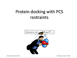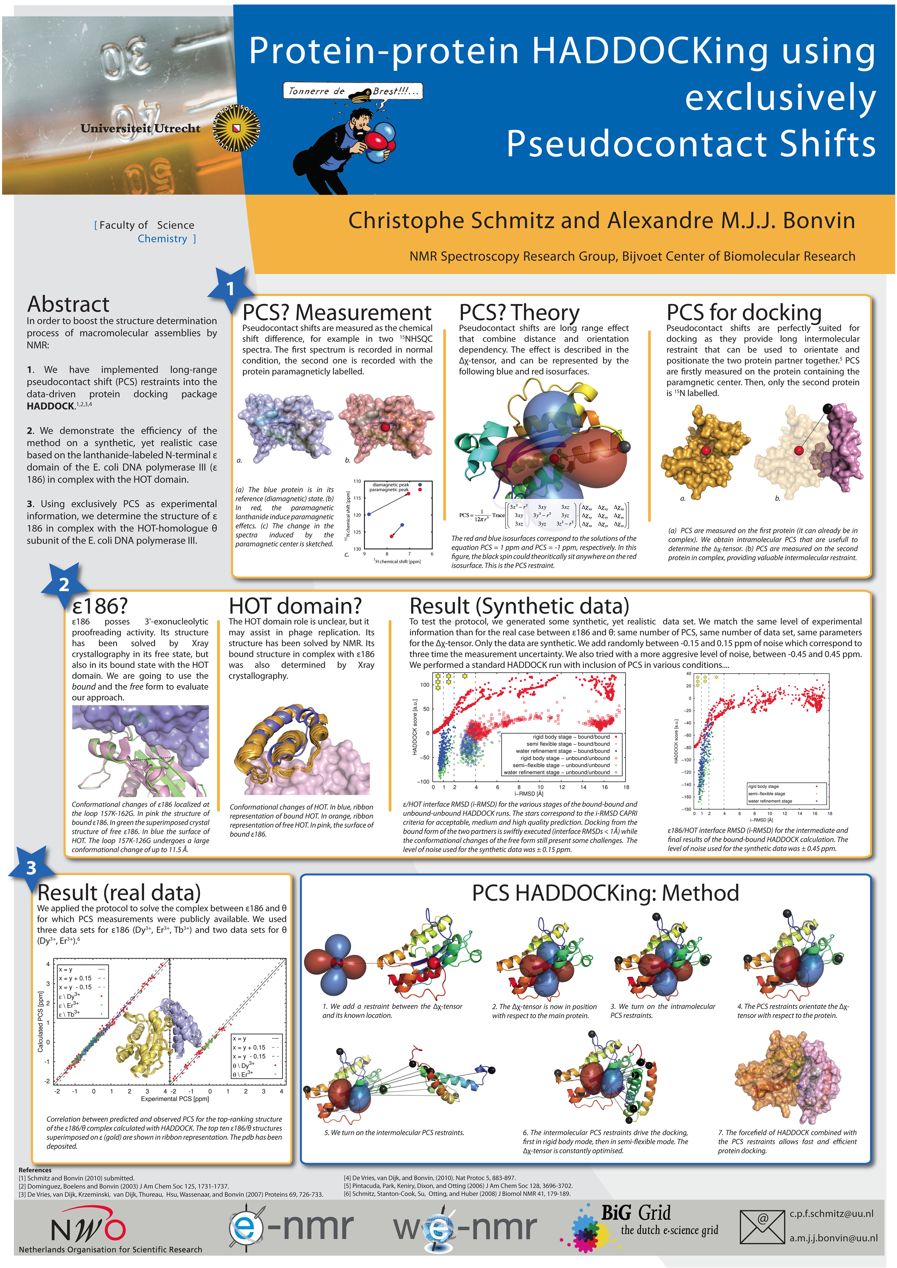 Christophe Schmitz and Alexandre M.J.J. Bonvin (2011). Protein-Protein HADDOCKing using exclusively Pseudocontact Shifts. Journal of Biomolecular NMR. 50:263-266